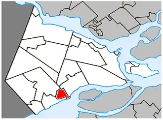 Los municipios vecinos son Saint-Zotique al oeste, Saint-Polycarpe al norte y Les Cèdres al este. Al sur, en la otra orilla, está ubicada la ciudad de Salaberry-de-Valleyfield, que es la capital de Vallée-du-Haut-Saint-Laurent.[3]