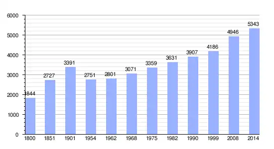| Gráfica de evolución demográfica de Les Essarts entre 1800 y 2014 |