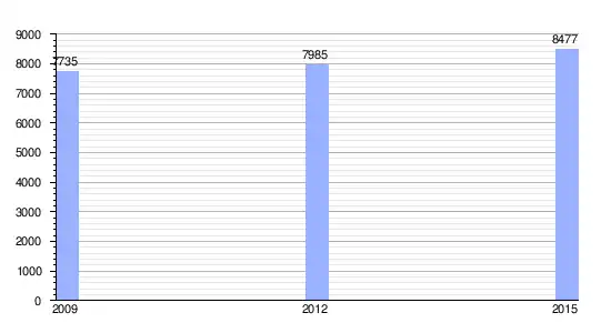 Los datos demográficos contemplados en este gráfico de la sección de comuna de Les Gommiers son estimaciones que se han cogido para los años 2009,[2] 2012[3] y 2015[4] de la página del Instituto Haitiano de Estadística e Informática (IHSI).