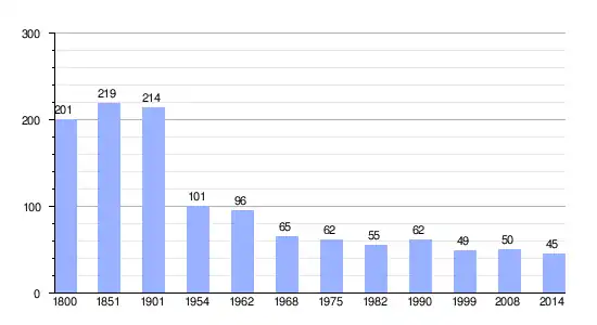 Los datos demográficos contemplados en este gráfico de la comuna de Les Moutiers-Hubert[4] se han cogido de 1800 a 1999 de la página francesa EHESS/Cassini, y los demás datos de la página del INSEE.[5]