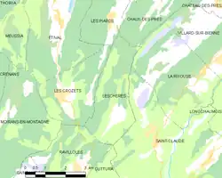 Leschères es una localidad y comuna francesa situada en la región de Franco Condado, departamento de Jura, en el distrito de Saint-Claude y cantón de Saint-Claude (Jura).
