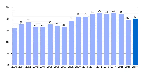 | Gráfica de evolución demográfica de Letona[3] entre 2000 y 2017 |