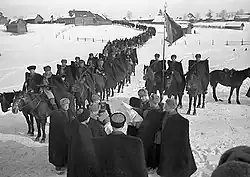 El mayor general Lev Dovator con sus soldados del 2.º Cuerpo de Caballería de la Guardia durante la batalla de Moscú