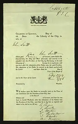 - ↑ «The Freedom of the City». City of London. Consultado el 21 de agosto de 2016.
