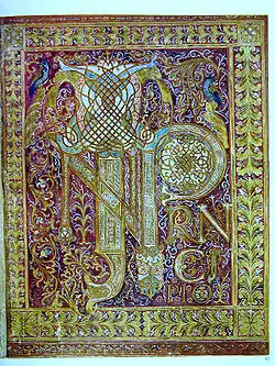 ![]() Página iluminada (inicio de Génesis) de una antigua biblia italiana. | |||||