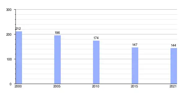 | Gráfica de evolución demográfica de Licín (parroquia) entre 2000 y 2021 |