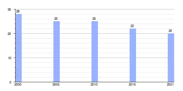 | Gráfica de evolución demográfica de Licín (aldea) entre 2000 y 2021 |