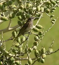 - ↑ BirdLife International (2012). «Lichmera incana». Lista Roja de especies amenazadas de la UICN 2025 (en inglés). ISSN 2307-8235. Consultado el 24 de noviembre de 2012.