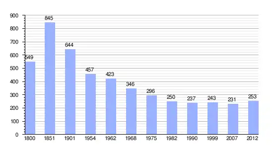 | Gráfica de evolución demográfica de Licq-Athérey entre 1800 y 2012 |