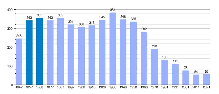 | Gráfica de evolución demográfica de Lidón[4] entre 1842 y 2021 |