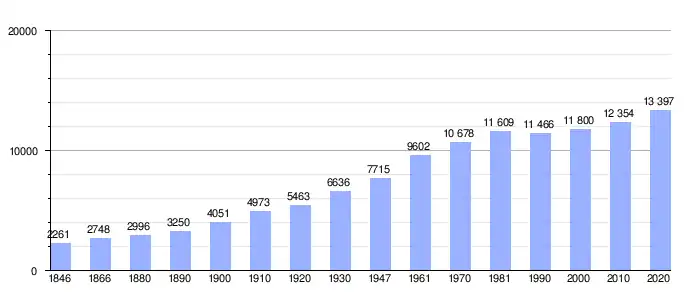 | Gráfica de evolución demográfica de Liedekerke entre 1846 y 2020 |