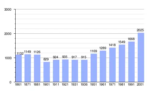 | Gráfica de evolución demográfica de Lierna entre 1861 y 2001 |