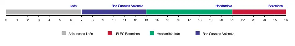 | 3 Hondarribia-Irún | 67 | 64 | ||||||||||||||||||||