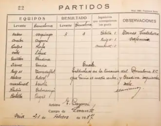 | 7 de febrero de 1937 | Levante FC |
