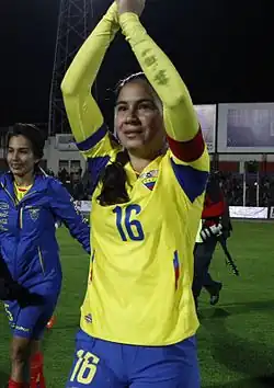 En 2014 fue la capitana de la selección ecuatoriana de fútbol femenino y jugó la Copa América.