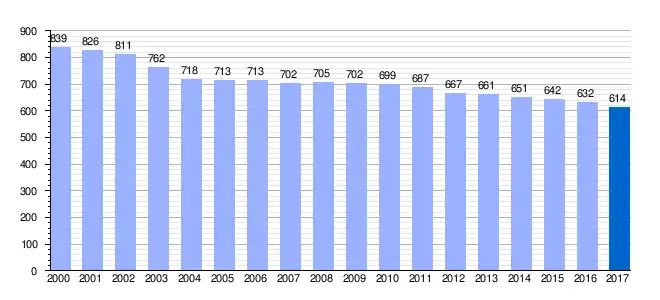 | Gráfica de evolución demográfica de Lillo del Bierzo[6] entre 2000 y 2017 |