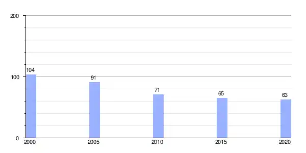 | Gráfica de evolución demográfica de Liñares (aldea) entre 2000 y 2020 |