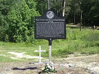 - ↑ Georgia Historical Society (2010). «Mary Turner and the Lynching Rampage of 1918». Historical Marker Index. Consultado el 23 de mayo de 2013.