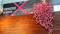 - ↑ a b «Cruces pintadas y fotos, una exposición contra el feminicidio en México». Vanguardia. Consultado el 28 de julio de 2017.