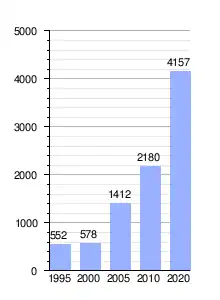 | Gráfica de evolución demográfica de Lindavista entre 1995 y 2020 |