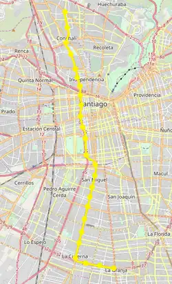 ![]() Recorrido de la Línea 2 del Metro de Santiago. | ||