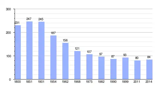 | Gráfica de evolución demográfica de Linières-Bouton entre 1800 y 2014 |
