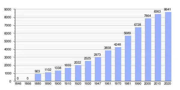 | Gráfica de evolución demográfica de Lint entre 1846 y 2020 |