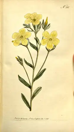 - ↑ «Linum flavum». Tropicos.org. Missouri Botanical Garden. Consultado el 18 de marzo de 2015.