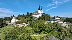 La iglesia de Pöstlingberg, una iglesia de peregrinación en la colina de Pöstlingberg. La basílica es el marco de la ciudad y fue construida entre 1738 y 1774, ubicada a 537 m sobre el nivel del mar.