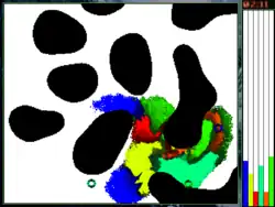 El juego se desarrolla en un campo de batalla en 2D, que puede o no tener obstáculos. Cada jugador (de 2 a 6 jugadores, humanos o artificiales) tiene un ejército de partículas y un cursor con el que controla sus partículas. El objetivo es asimilar todas las partículas enemigas, o ser el jugador con más partículas asimiladas cuando finalice el tiempo. El jugador solo puede mover el cursor, pero no puede controlar directamente sus partículas, estas seguirán el camino más corto hacia el cursor. El jugador controla miles de partículas al mismo tiempo, cuando estas partículas se mueven hacia el cursor dan la apariencia de un líquido. Cuando una partícula choque contra una partícula enemiga, estas lucharán y si el enemigo no responde al ataque (si no va en dirección contraria), será asimilada. Las partículas nunca mueren, solamente cambian de jugador (se asimilan) por lo que la cantidad de partículas en el campo de batalla siempre es la misma.
