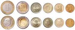 | Monedas | 1, 5, 10, 25, 50 kurush, 1 y 5 liras | |