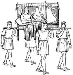 Para el transporte urbano se usaban normalmente literas con ocho porteadores, en las que la persona o personas (normalmente hasta dos) que eran transportadas yacían sobre un colchón duro y disponían de unas almohadas. Existía también un servicio público de literas que contaba incluso con lugares para tomarlas, paradas (castra lecticariorum). Las personas menos pudientes se hacían transportar en silla de manos (sella) portada por dos personas.[4]