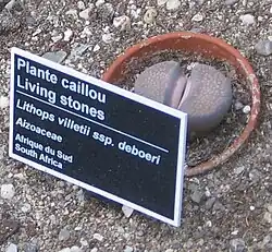 - ↑ «Lithops villetii». Conservatorio y Jardín Botánico de Ginebra: Flora africana. Consultado el 24 de junio de 2011.