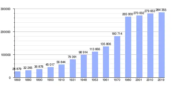 | Gráfica de evolución de Liubliana entre 1869 y 2019 |