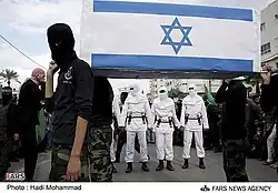Hamás, una organización militar y política palestina islamista que actualmente está en control de la Franja de Gaza, ha abogado constantemente por la destrucción de Israel y el establecimiento de un Estado islámico en todo el territorio de Palestina. [23] La Carta de Hamás de 1988 ha sido caracterizada como antisemita y genocida.,[2] [24] La carta responsabiliza colectivamente a los judíos, más allá de los israelíes, de diversos problemas globales, incluidas las dos guerras mundiales. En un esfuerzo por moderar la percepción pública de Hamás, en 2017 se emitió una carta revisada en 2017, que mantiene el objetivo de un Estado islámico palestino para reemplazar lo que considera un Israel ilegal e ilegítimo.[24]