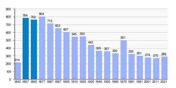 | Gráfica de evolución demográfica de Lles[3] entre 1842 y 2021 |