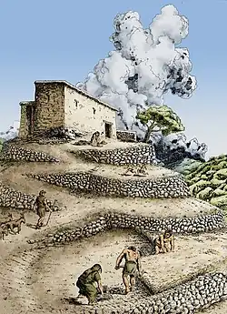 El estudio sedimentológico indica una modificación intencionada de la topografía del cerro, mediante la construcción de aterrazamientos y un conocimiento notable de las propiedades de los materiales, como se puede constatar en la impermeabilización de la cisterna con arcilla. La organización del espacio, los accesos complejos y la preparación del espacio, indican que se trata de una población con gran dominio de las técnicas constructivas.