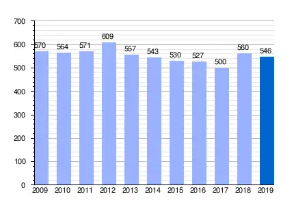 | Gráfica de evolución demográfica de Llombards entre 2009 y 2019 |