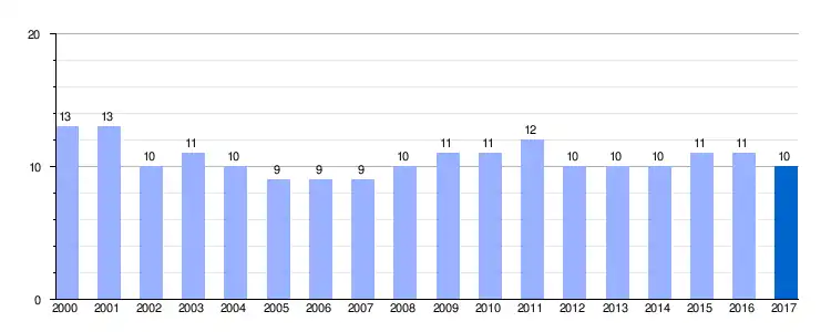 | Gráfica de evolución demográfica de Llorengoz entre 2000 y 2017 |