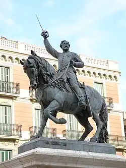 ![]() Monumento al General Prim, parque de la Ciudadela, Barcelona (1882-1887). Foto de 1900, con la estatua original de Puiggener, destruida en 1936 | ||