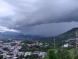 La lluvia orográfica es la lluvia que se produce por el ascenso del aire húmedo al encontrarse con un obstáculo orográfico, como una montaña.[1] En su ascenso el aire se enfría hasta alcanzar el punto de saturación del vapor de agua, y una humedad relativa del 100%, que origina la lluvia.
