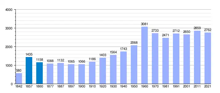 | Gráfica de evolución demográfica de Lobón[1] entre 1842 y 2021 |