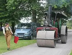 - Cada automóvil tenía que ser acompañado por un grupo de tres personas: un conductor, un fogonero y un hombre con una bandera de color rojo (de ahí el nombre de Ley de la Bandera Roja) que tenía que caminar 60 yardas (55 metros) por delante. El hombre con la bandera roja (o, alternativamente, con un farol) obligaba a los vehículos a mantener el ritmo del paso de hombre (que es precisamente 6 km/h) y tenía la tarea de alertar a los que fueran montados a caballo del paso del vehículo de motor.