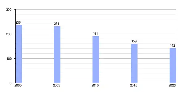 | Gráfica de evolución demográfica de Lodoselo entre 2000 y 2023 |