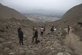 ![]() Voluntarias y voluntarios reforestando el ingreso a Lomas de Lúcumo durante temporada seca | ||