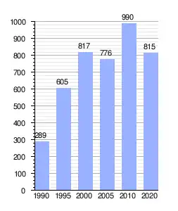 | Gráfica de evolución demográfica de Lomas del Pedregal entre 1990 y 2020 |