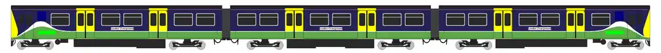 Impresión de artista de la librea del nuevo material rodante. (Imagen del tren completo)