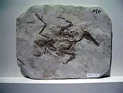 Espécimen fósil de Longipteryx chaoyangensis, Hong Kong Science Museum. | ||
