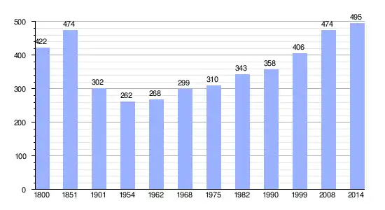 Los datos demográficos contemplados en este gráfico de la comuna de Longueval-Barbonval[4] se han cogido de 1800 a 1999 de la página francesa EHESS/Cassini, y los demás datos de la página del INSEE.[5]
