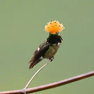 ![]() Ejemplar macho de coqueta coronada (Lophornis stictolophus) en el sur de Ecuador. | ||